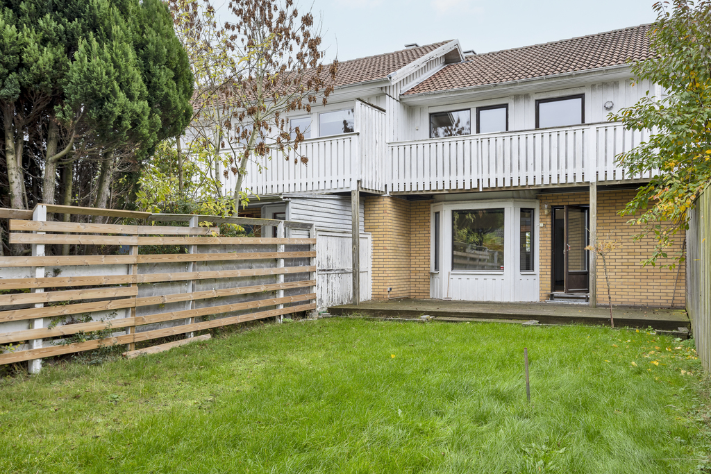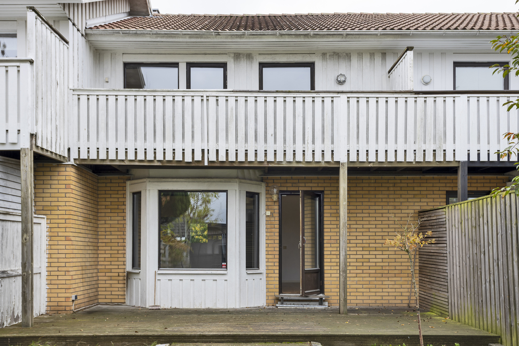 Välplanerat radhus i två plan med trevlig trädgård i västerläge och dessutom med en källarvåning som innebär gott om extra yta. I behov av uppfräschning, men bakom ytskikten döljer sig en bostad med fin grundstruktur och bra möjligheter för den som ser potentialen. Helt enkelt ett prisvärt alternativ för den händige eller den som söker ett projekt med framtida värde. Entréplan har luftiga sällskapsutrymmen där vardagsrummet har utgång till terrass med trädgården framför och ett rymligt matrum med anslutande kök som ligger vägg i vägg med vardagsrummet. På övre plan finns tre sovrum varav ett med stor balkong i soligt västerläge. Dubbla badrum - ett på varje våning - ovärderligt i vardagen för barnfamiljen och en praktisk källarvåning som rymmer både tvättstuga och stora utrymmen för hobby/förvaring samt kanske även sovytor. Trädgården har en terrass som ligger delvis under tak, fin gräsmatta för barnlek och spring samt en mindre förrådsbyggnad. Alldeles lagom stora utomhusytor som är perfekt för er som flyttat ifrån villan men ändå vill ha en lättskött trädgård eller er med små barn som vill bo i ett trevligt område med närhet till skolor samt fina lekmöjligheter i egen trädgård. Lugnt område med skolor, all vardaglig service och bra pendlingsmöjligheter. Varmt välkommen på visning!