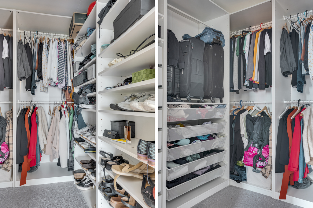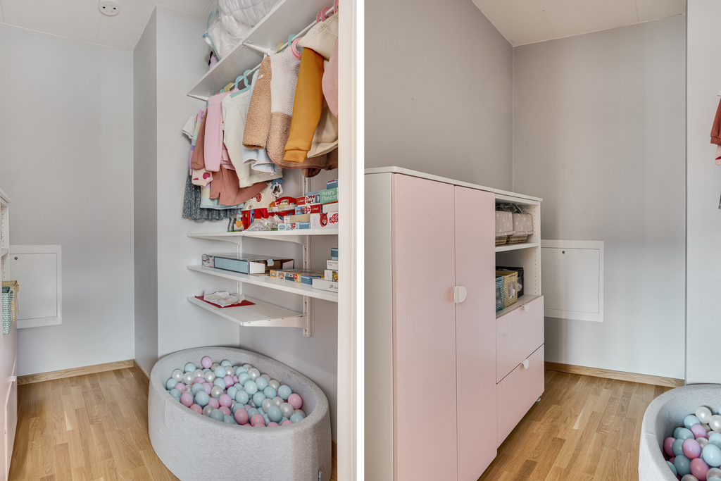 Det fjärde sovrummet är mindre och har byggts om till en stor walk in closet, där inredningen ingår. Här finns ett dolt fönster som man kan ta fram igen om man istället önskar nyttja det som just ett fjärde sovrum.