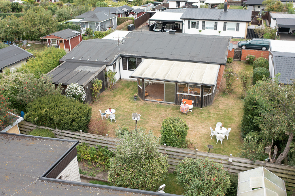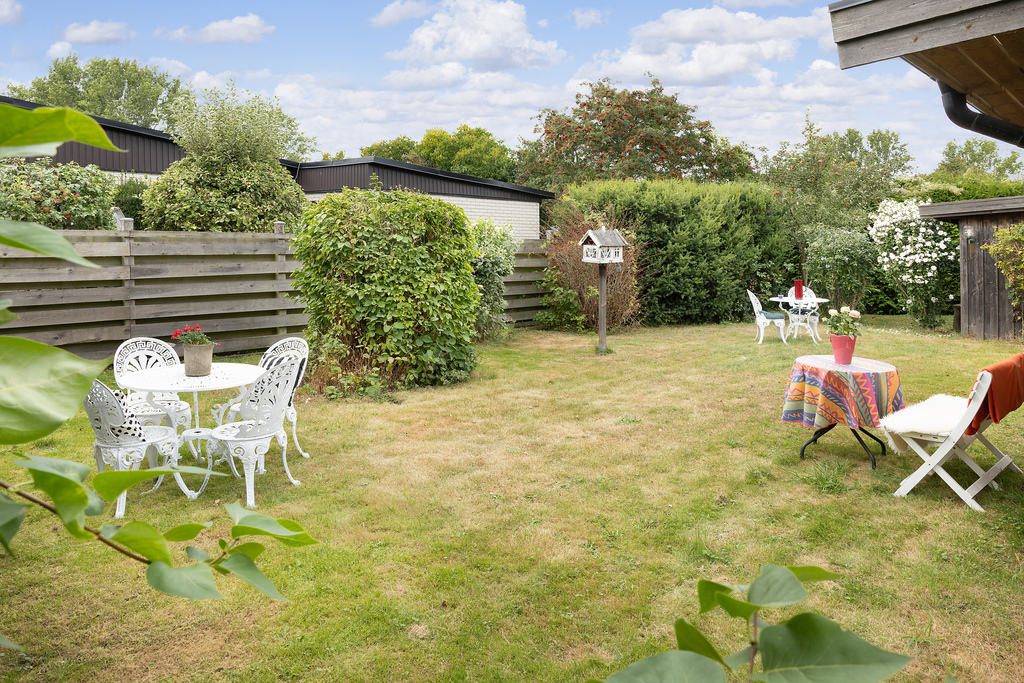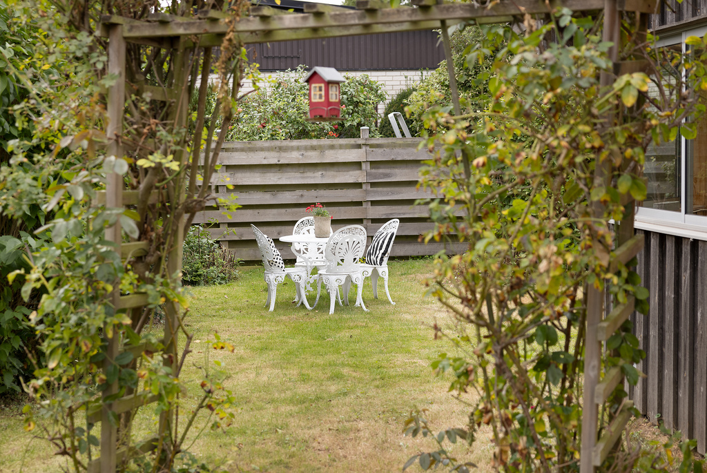 Trädgården är en härlig oas med gott om plats för både avkoppling och lek. Här finns flera naturliga sittplatser för kaffestunden i solen eller middagar i det fria, omgivna av lummig grönska och blomstrande växter. Trädgården är inhägnad, vilket gör den perfekt för barnfamiljen eller för dig med hund – tryggt och enkelt att släppa ut de små utan att oroa sig. Uterummet nås direkt från vardagsrummet och blir en naturlig förlängning av trädgårdslivet under större delen av året.