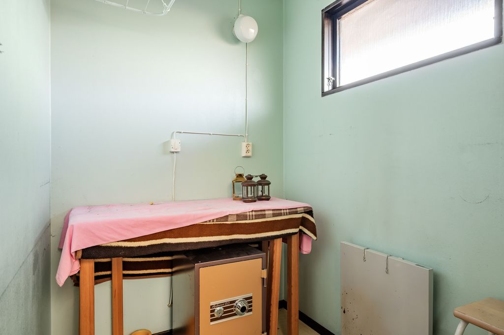 I anslutning till hallen finns ett mindre rum som nyttjats som förråd/torkrum. Det har en gång i tiden varit en gästtoalett och avlopp finns kvar för den som önskar att göra om rummet. Golvet är klätt med plastmatta och väggarna är tapetserade.