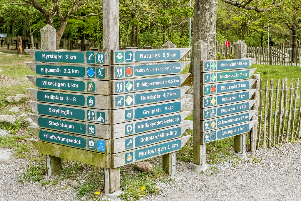 Populära Skrylleområdet är beläget mellan Södra Sandby och Dalby som består av flera sammanlänkade naturreservat. Här finns gott om parkeringsplatser i anslutning till Skryllegården som är själva knutpunkten i Skrylle som har trevligt café och restaurang samt ett gym. Här finns tavlor där man kan se rundorna för de olika vandringslederna och finns allt från motionsslingor med belysning som även passar utmärkt för barnvagnar och rullstolar, till längre slingor där man kan gå mellan stock och sten. För barnfamiljerna finns uppskattade Naturum där barnen kan lära sig mer om skogens djurliv. Det är möjligt att hyra grillplatser.