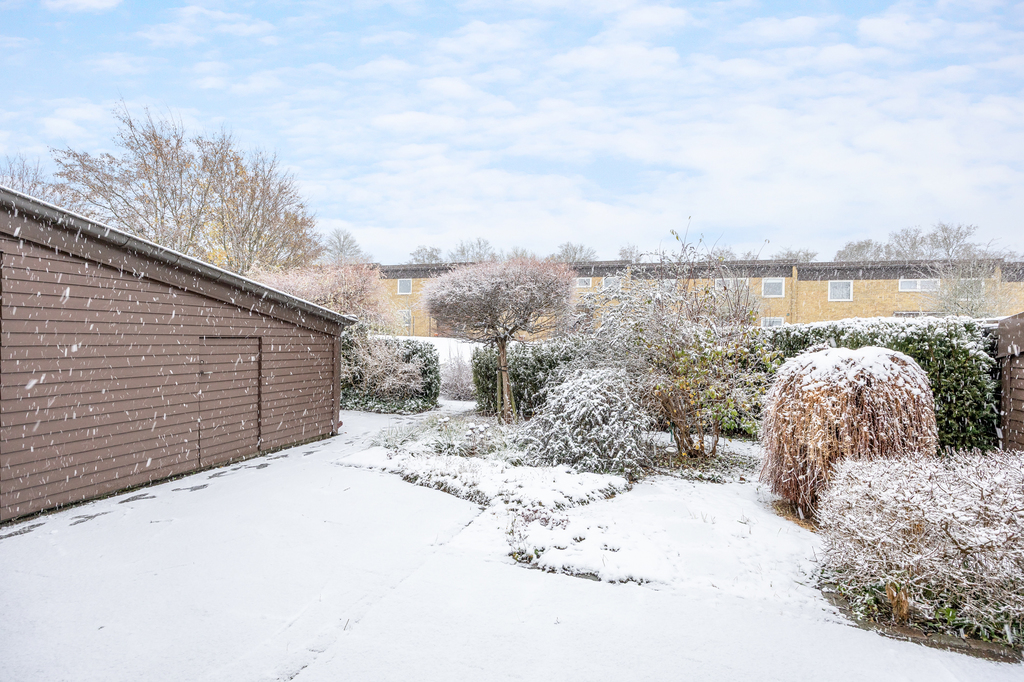 Inbjudande och lättskött trädgård i soliga söder med både uteplats, gräsmatta och fina planteringar. Mycket trevligt läge med en charmig stenlagd gång som leder fram till en öppning i häcken mot den lilla gröningen på husets baksida. I anslutning till huset finns en stenlagd uteplats i bästa tänkbara söderläge där solen skiner hela dagen lång. Gott om plats för både utemöblemanget och grillen, här spenderar man gärna lediga dagar tillsammans med familjen. Ett rymligt förråd med plats för allt som behövs för ett bekvämt radhusliv nås från terrassen och väggar mot grannarna på båda sidor skyddar uteplatsen från insyn.