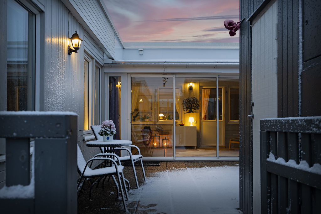 Marklägenhet på populärt och barnvänligt område - Atriumgård med uterum i västerläge – Garage